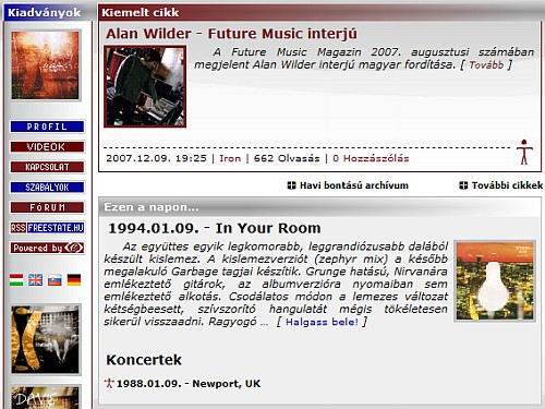 A vezércikk alatt látható lesz egy új információs doboz, abban az esetben, ha az adott nap valamelyik korábbi évben megjelent valamilyen kiadvány, esetleg koncert volt. Bízunk benne, hogy ezen újításnak hála sokak kedvet kapnak majd belehallgatni egy-egy kiadványba, és ha még az nem része gyűjteményének, ösztönözheti annak bővítését. Mivel az együttes történetében a Karácsony előtti időszak mindig holtzóna kiadványok megjelenésének szempontjából, az elkövetkező napokban csak koncertekkel lehet, majd találkozni ebben az információs dobozban. Ezért, hogy illusztráljuk az elmondottakat, íme egy kép: