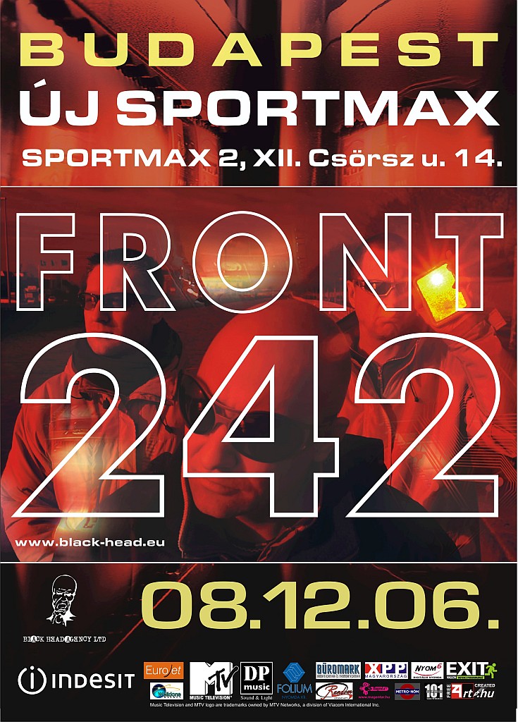 2008. december 6-án este 8 órai kezdettel FRONT 242 koncert lesz Budapesten a SPORTMAX 2-ben. (XII. kerület Csörsz utca 14., a MOM Parkkal szemben).