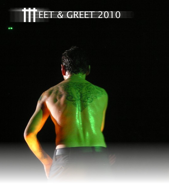Találkoztam pár ismerős arccal, beszélgettünk majd kijött Márkus Éva a Live Nation-től és a nevek bediktálása után mehettünk befele. Beértünk egy kis szobába, ami kb. 5*5m lehetett. Pislákolt pár lámpa és volt még két dM plakát is a falon. Itt lesz a nagy találkozás? Kérdezte mindenki. Néhány rajongónál Stripped könyv, CD, stb. Szegények abban a reményben hozták magukkal a relikviákat, hogy majd kapnak rá három aláírást. Én óvatosan közöltem velük, hogy ilyenre ne számítsanak, mert az egész találkozás, kézfogás és fotózás a Forma 1-es kerékcserét megszégyenítő sebességgel fog történni. Volt aki nem hitt nekem, de Éva ugyanezt közölte velünk. Mivel én ezt tudtam előre, a jegyemen kívül semmi nem volt nálam és nem is ért csalódás. Ez van, ez egy gépezet, egy nagyon jól megszervezett koncertturné, ahol a fiúk minden perce (főleg a show előtt) előre meg van szervezve. Teltek a percek, jöttek a poénok, hogy ki fog szamárfület mutatni Davenek vagy Martinnak a fotózás alatt :-)  Közben megjelent egy csinos fiatal fekete angol „asszisztens” aki megnézte, hogy kik és mik vagyunk. Mosolygott és pár szót mondott, hogy mi is lesz és hogy miként fog zajlani az egész Meet & Greet. 16 rajongó volt a szobában, ezt két részre osztották, hogy mindenki elférjen a fotókon. Beszélt a fotóssal hogy milyenek a fényviszonyok én erre odaszóltam, hogy „It’s No Good”. Nagy nevetés majd kiment a szobából. Pár perc múlva bejött Jonathan Kessler manager is, aki szintén „lecsekkolta” kik vagyunk. Hogy ezekre mennyire vigyáznak, nem hiszem el – mondtam magamban. Közben jött az infó hogy már mind a 3 tag az épületben tartózkodik. De jó, mondtam, ha így megy tovább nem fogom látni a Nitzer Ebb-et, mert már 7 óra bőven elmúlt. További percek teltek el, készült pár mobilos fotó és akkor végre valaki kintről beszólt: Itt vannak!