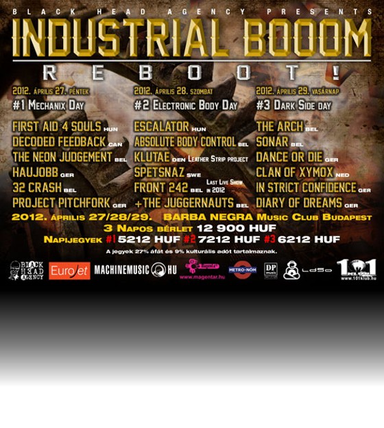 Az Industrial Booom fesztivál már 2011. tavaszán is súlyos névsorral rukkolt elő, ami az ott fellépett vendégeket illeti, ez idén április végén sem lesz máshogy - sőt, a Black Head Agency még rá is tett erre pár lapáttal az idei felhozatallal. Három teljes napon keresztül váltják egymást az elektro és alter-műfaj sötétebb vizein evező művészek, akik közül néhányat azért Depeche Mode-os körökben is illik ismerni, legalább a zenekarhoz való kötődésük kapcsán!